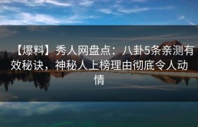 【爆料】秀人网盘点:八卦5条亲测有效秘诀,神秘人上榜理由彻底令人动情