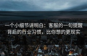 一个小细节讲明白:客服的一句提醒背后的行业习惯,比你想的更现实 在你我日常的客服对话里,最常见的往往...